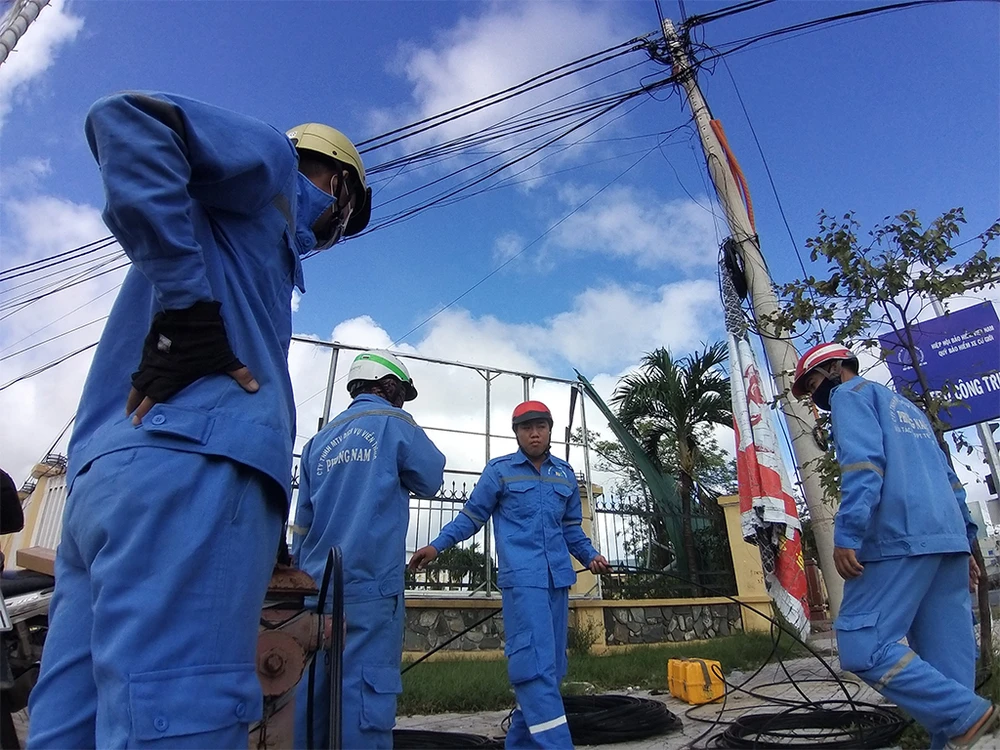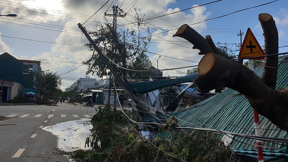 Ngay sau khi bão tan, ngành điện lực tỉnh Quảng Ngãi phối hợp với các đơn vị liên quan bắt tay vào công tác thu dọn, khắc phục sự cố.