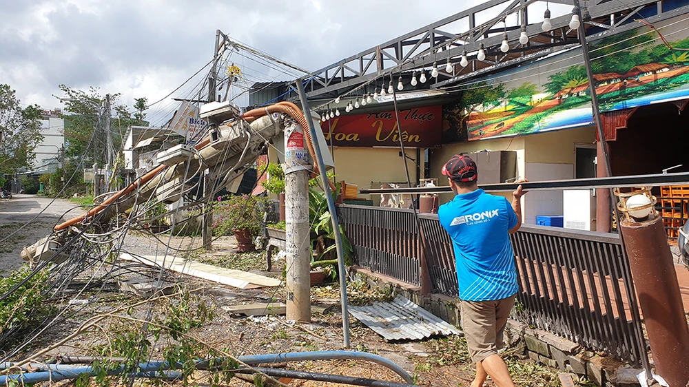 Khung cảnh TP Quảng Ngãi hiện vẫn còn tan hoang sau khi bão đi qua.