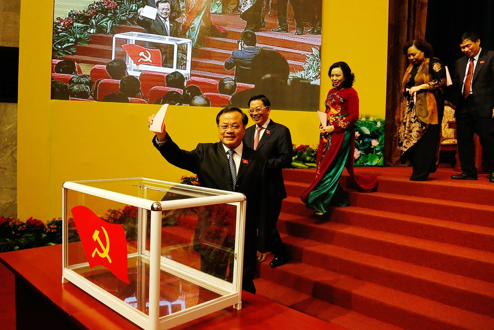 Bỏ phiếu bầu Ban chấp hành khóa mới tại Đại hội Đảng bộ Hà Nội. Ảnh: T. Phú.