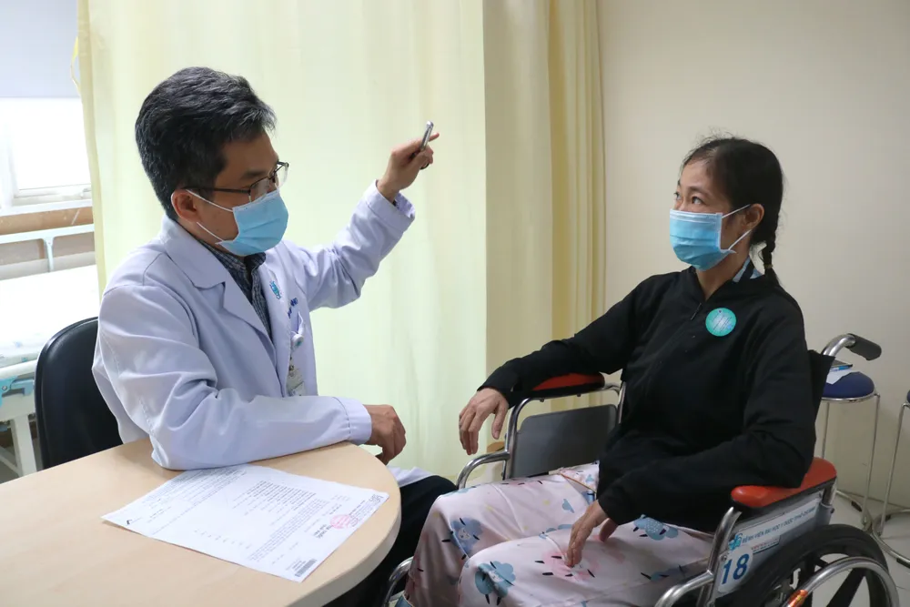 TS-BS Nguyễn Bá Thắng đang thăm khám cho người sau đột quỵ. Ảnh: NP