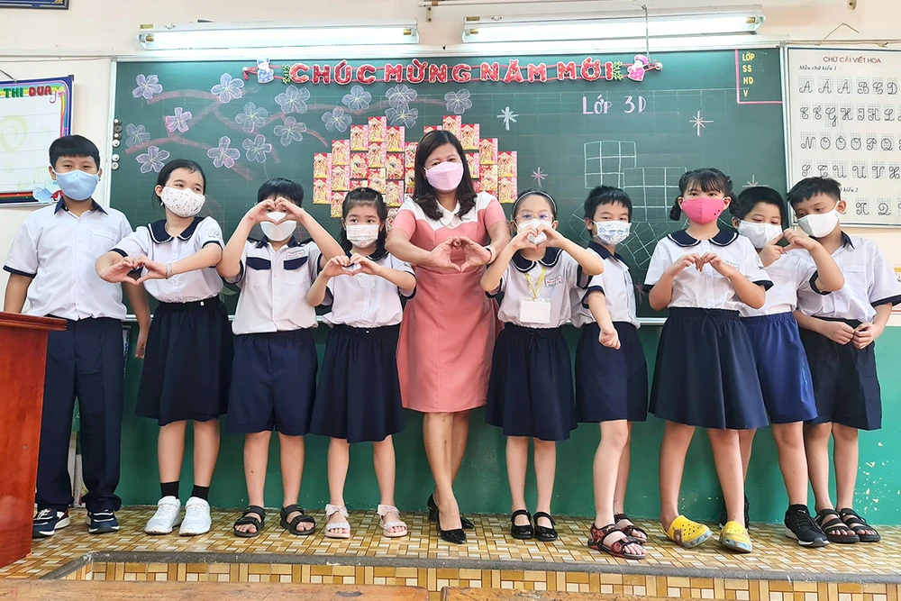 Đưa con đến trường, GV gọi điện thoại kêu đón về là tình cảnh suốt hai, ba tuần nay của phụ huynh khối tiểu học ở TP.HCM. Phụ huynh khổ một thì GV khổ với các HS nhiều hơn, nhất là các cô còn là F0, như trường hợp của cô Nguyễn Thị Vinh, GV chủ nhiệm lớp 2/9 Trường Tiểu học Nguyễn Bỉnh Khiêm (quận 1).