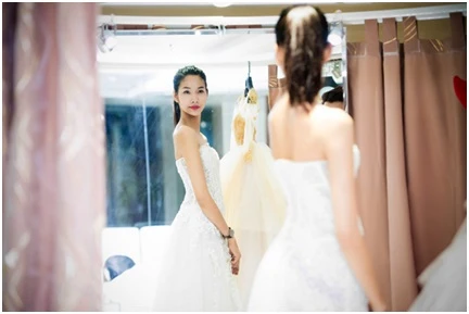 Ngay khi có cơ hội mặc thử một chiếc váy cưới, nàng sẽ không bao giờ từ chối. Không một cô gái nào không thích nhìn thấy mình trong vóc dáng một cô dâu dù lúc đó vẫn đang….một mình toàn tập.
