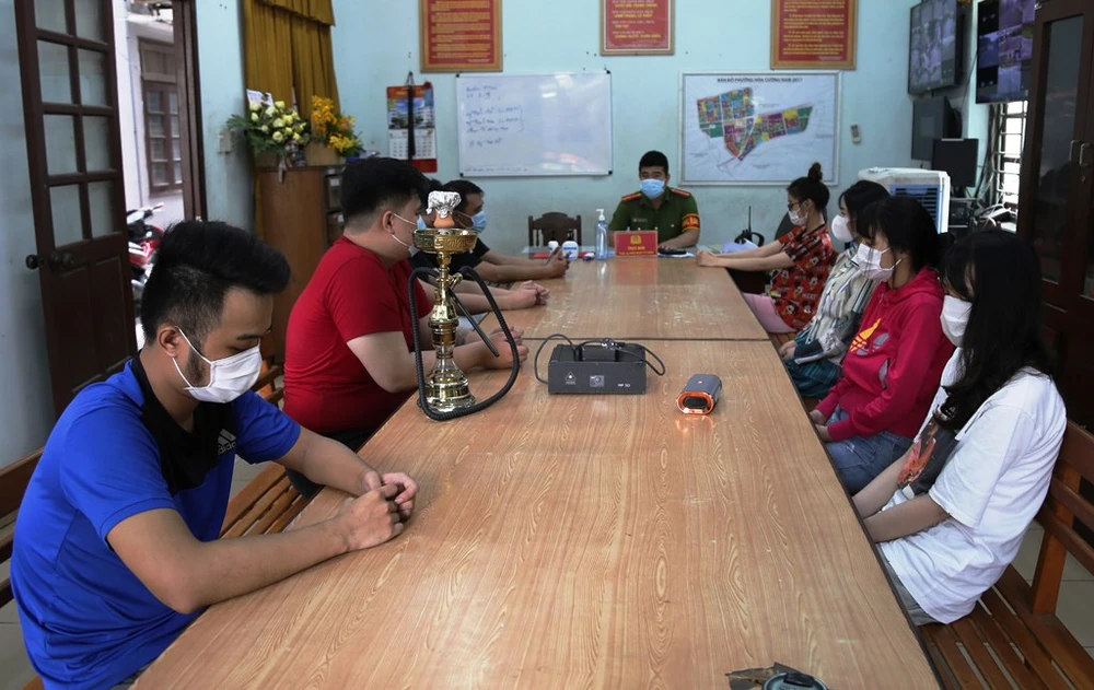 Lực lượng chức năng đã lập biên bản vi phạm của từng người về hành vi sử dụng trái phép chất ma túy và không chấp hành quy định giãn cách xã hội.