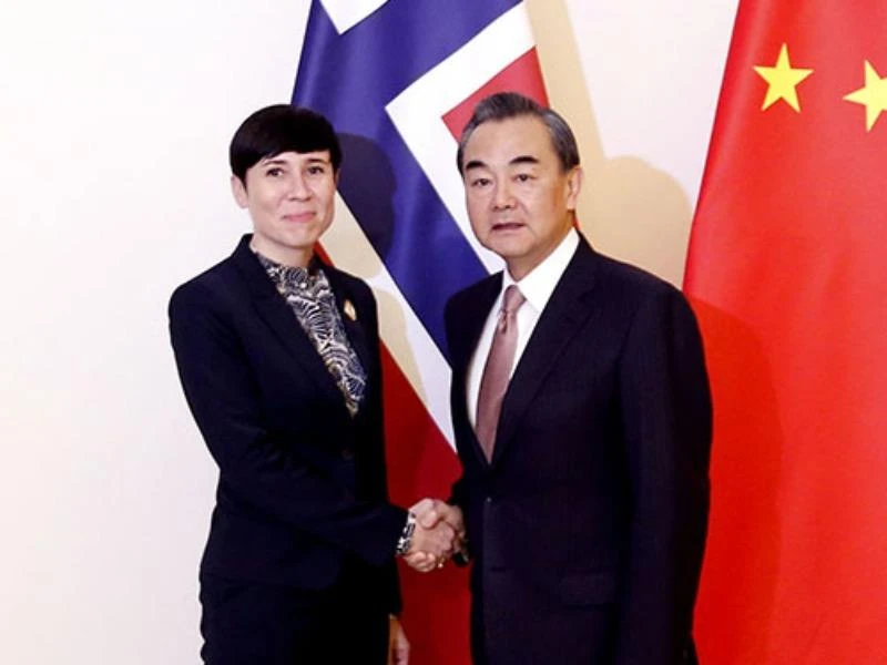 Bộ trường Ngoại giao Trung Quốc Vương Nghị (phải) và Ngoại trưởng Na Uy Eriksen Søreide. Ảnh: ĐẠI SỨ QUÁN TRUNG QUỐC TẠI ESTONIA