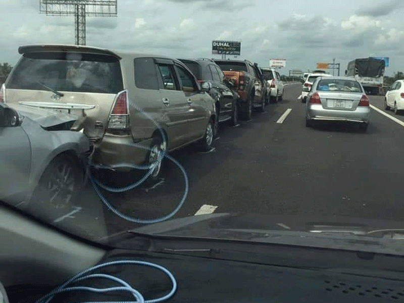 Sau đó, chiếc ô tô 5 chỗ này lại tông tiếp vào chiếc ô tô con 4 chỗ phía trước và cứ thế xe sau đúng xe trước tổng cộng 8 ô tô tông nhau.