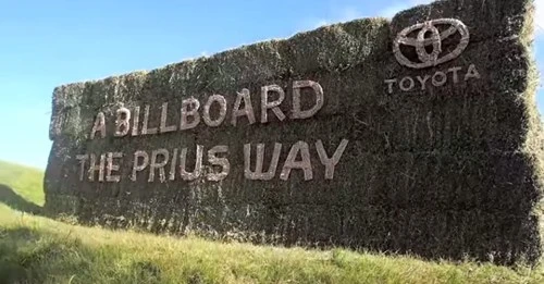Toyota đang xây dựng hình ảnh là một thương hiệu sản xuất xe thân thiện với môi trường. Vì vậy, công ty quảng cáo Saatchi & Saatchi đã dùng một biển quảng cáo đặc biệt làm bằng cát, bùn và cỏ để giới thiệu về xe Prius sắp ra mắt của Toyota. Biển quảng cáo được đặt tại Sydney (Úc) năm 2014.