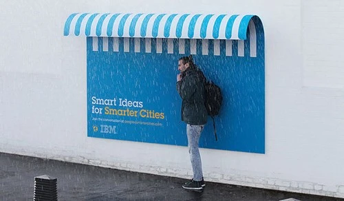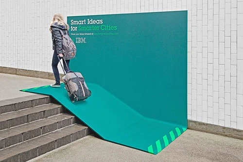 Cụ thể, hãng này đã biến 3 tấm biển quảng cáo của IBM thành một mái hiên che mưa, một đường dốc để kéo đồ và một thanh ghế để người dân nghỉ chân.