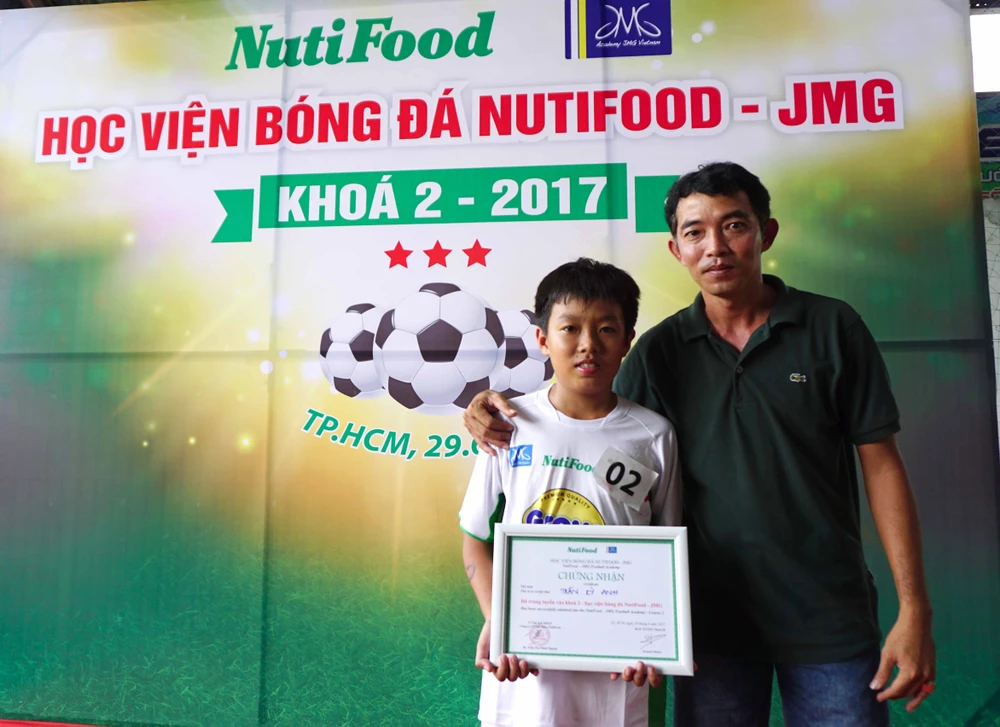 Con trai cựu tuyển thủ quốc gia Duy Quang hạnh phúc trong ngày trúng tuyển vào Học viện NutiFood. Ảnh: DỊU HÙNG