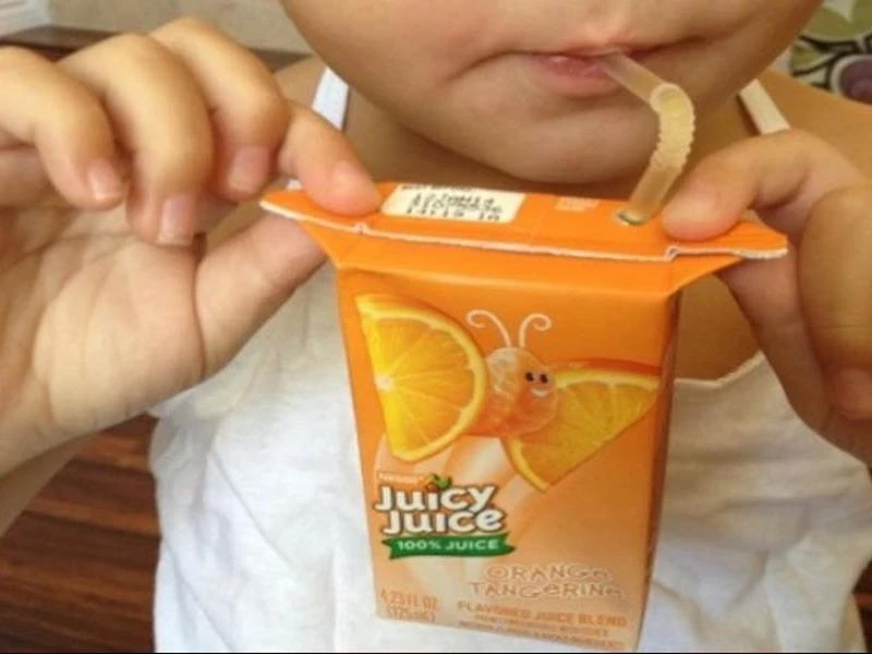 Cầm hai bên tay cầm của hộp sữa/ nước trái cây sẽ không làm đổ đồ uống. Ảnh: Brightside