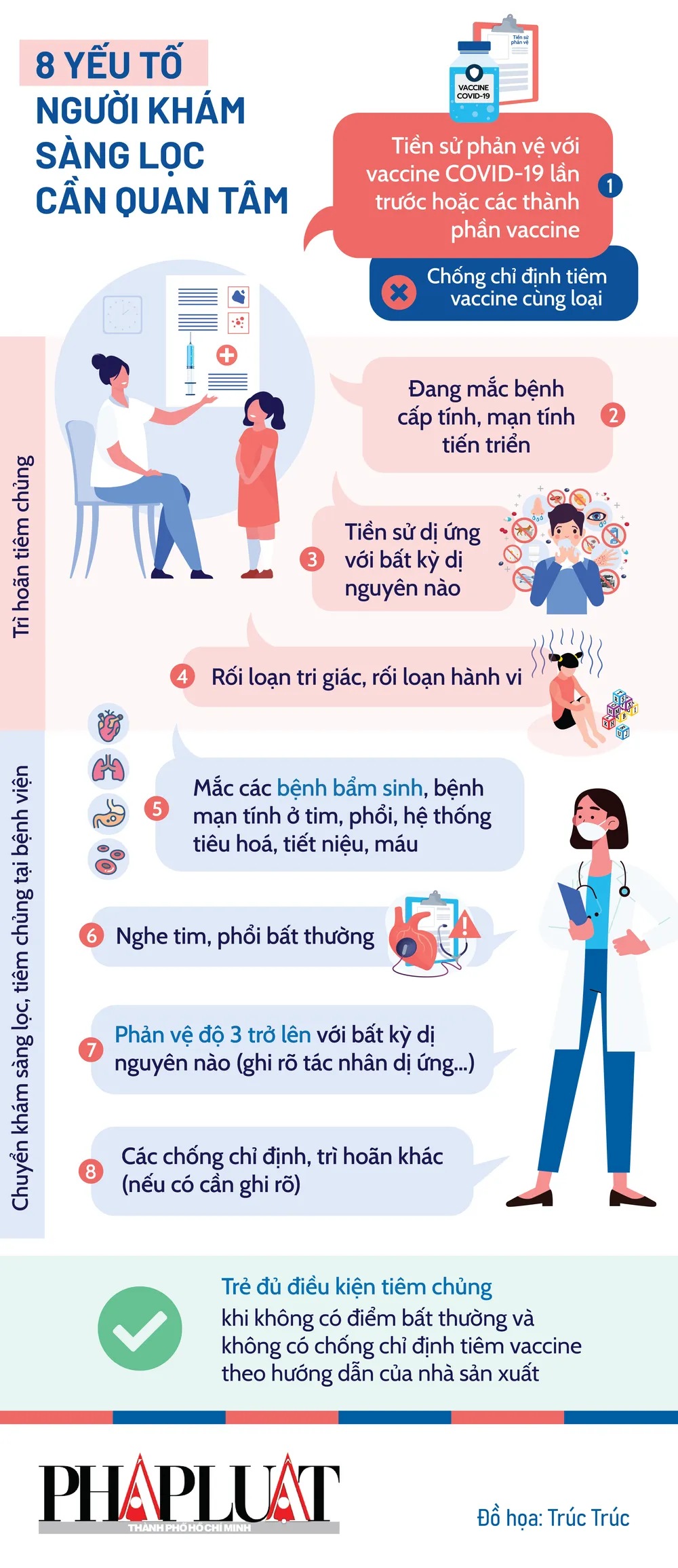 (PLO)- Bộ Y tế vừa có hướng dẫn mới nhất về khám sàng lọc trước tiêm chủng vaccine phòng COVID-19 cho trẻ em, trong đó lưu ý 8 yếu tố cần quan tâm.