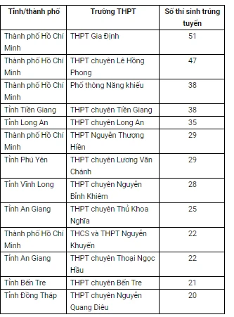 Số thí sinh trúng tuyển theo từng trường phổ thông cụ thể như sau: