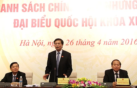 Tổng Thư ký QH Nguyễn Hạnh Phúc phát biểu tại buổi họp báo công bố danh sách chính thức các ứng cử viên ĐBQH khóa XIV. Ảnh: TRỌNG PHÚ