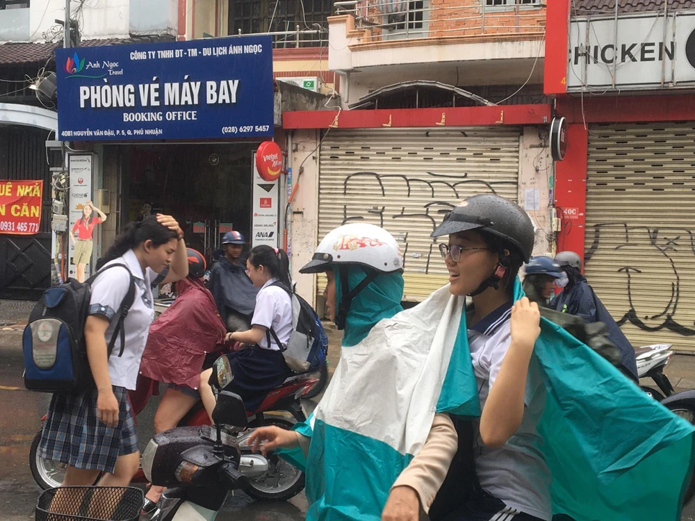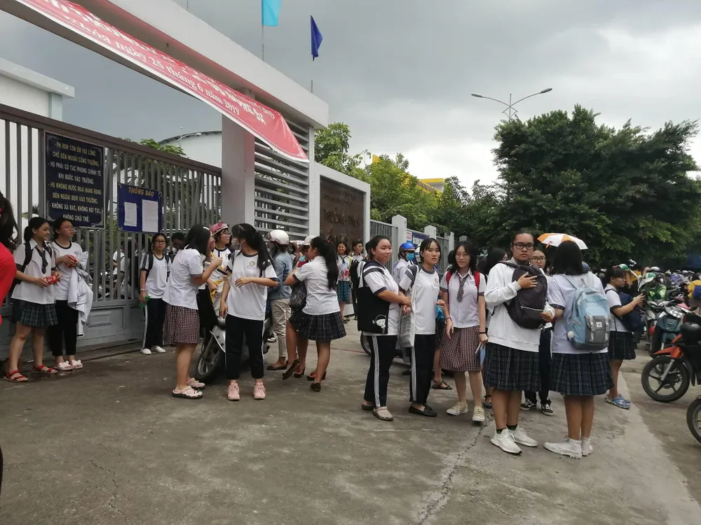 Thí sinh đến làm thủ tục dự thi tại điểm thi trường THCS Đống Đa, TP.HCM. Ảnh: Hằng Trần
