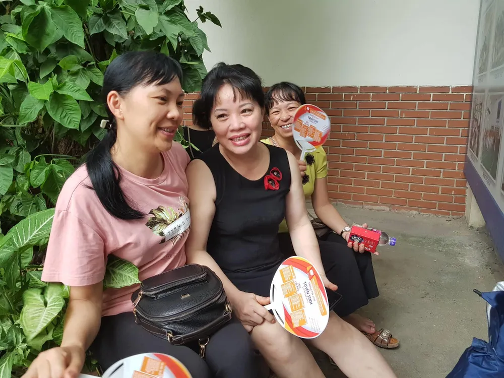 Chị Ánh (áo đen) lặn lội từ Thái Bình lên Hà Nội cho biết sẽ ở lại đưa đón và chăm sóc con đến hết kỳ thi.