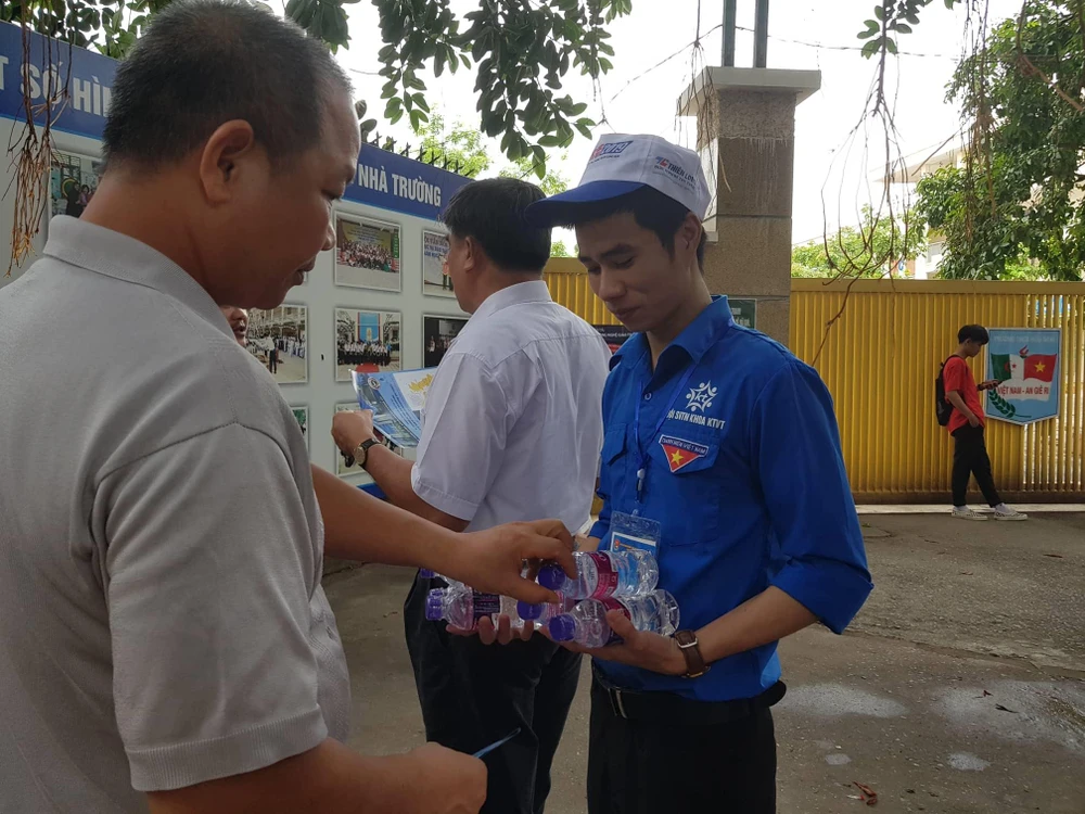 Sinh viên tình nguyện tiếp sức cho phụ huynh. Ảnh: An Hiền