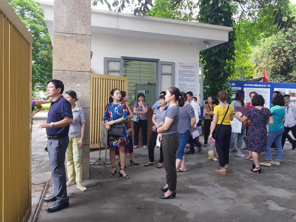 Đúng 14 giờ, toàn bộ thí sinh vào trường làm thủ tục dự thi, nhiều phụ huynh đứng chờ con em mình trước cổng trường. Chị Phạm Thị Ánh (quê Thái Bình) mẹ thí sinh Phạm Văn Đức cho biết đã lặn lội từ Thái Bình lên Hà Nội vào chiều tối qua để kịp hôm sau đưa con đi làm thủ tục dự thi. Chị cho biết sẽ ở lại đưa đón và chăm sóc con đến khi kỳ thi kết thúc.