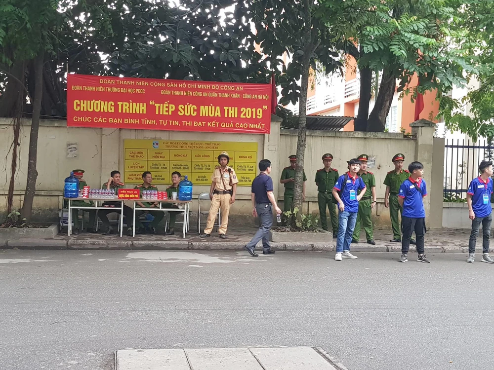 Tại điểm thi THCS Việt Nam-Angieri, an ninh khá nghiêm ngặt với sự tham gia của lực lượng công an địa phương. Ảnh: An Hiền