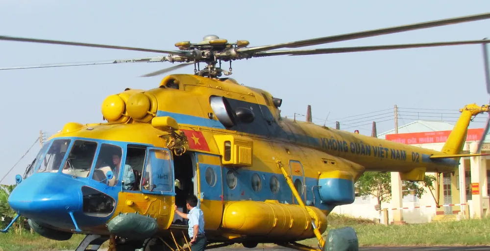 Trực thăng Mi171 02 bay đi Phú Quốc (Kiên Giang) đón Thứ trưởng Bộ GTVT Phạm Quý Tiêu, sau đó thực hiện nhiệm vụ tìm kiếm theo lệnh. Ảnh: GT
