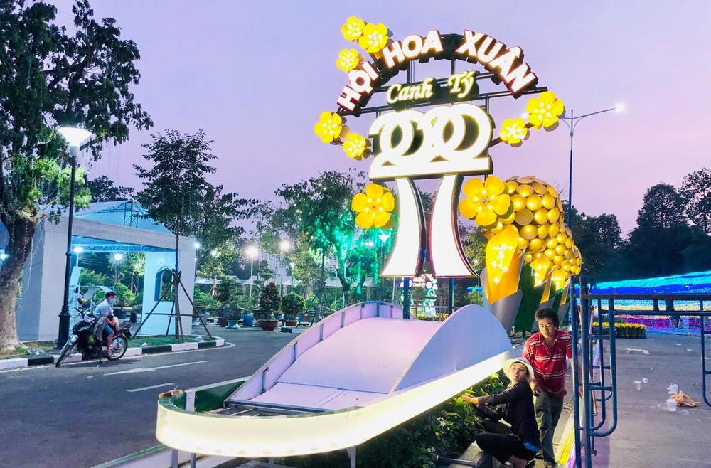 Công tác chuẩn bị trước khi diễn ra lễ khai mạc hội hoa xuân đã hoàn tất. Ảnh: KD