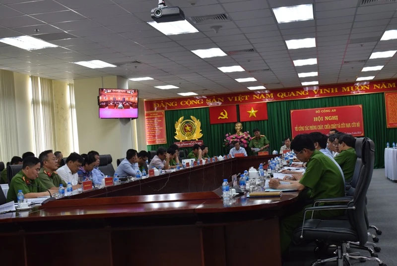 Hội nghị trực tuyến PCCC tại điểm cầu TP.HCM. Ảnh: NGUYỄN TRÀ