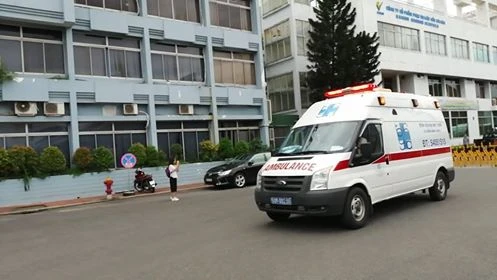 Xe chở các du khách về BV Đại học Y Dược ổn định sức khỏe trước khi về nhà. Ảnh: Hoàng Lan