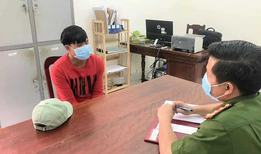 Trần Minh Khoa tại cơ quan công an. Ảnh: NX