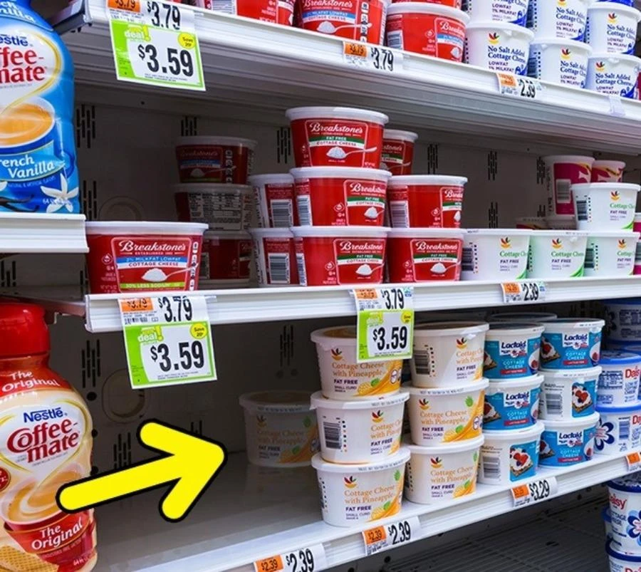 Nhân viên cửa hàng bật mí rằn, những thực phẩm tươi mới nhất thường được xếp ở phía sau gian hàng. Những sản phẩm ở phía rìa sát cửa kệ sẽ được ưu tiên cho sản phẩm sắp hết hạn.