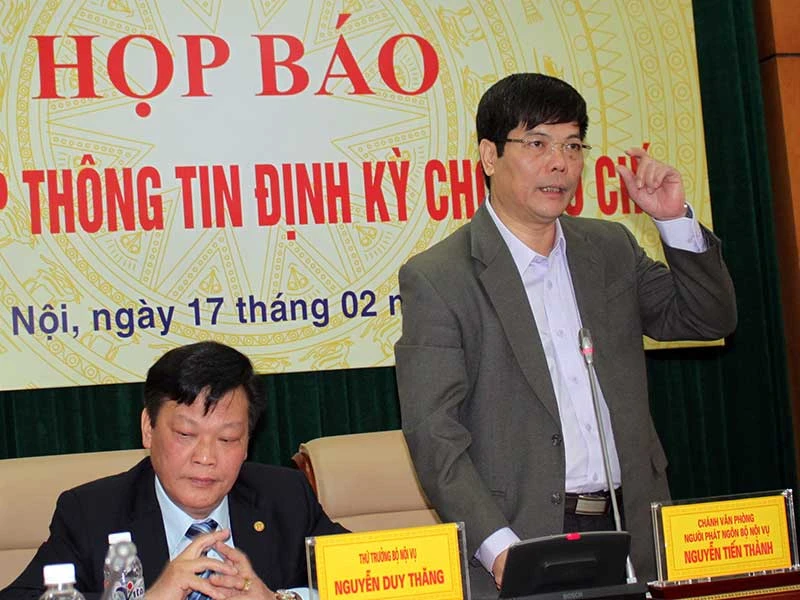 Chánh Văn phòng Bộ Nội vụ Nguyễn Tiến Thành đang công bố các tỉnh dính tới nạn “cả họ làm quan”. Ảnh: C.LUẬN