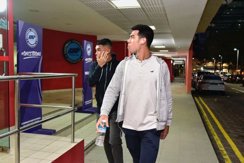 Các cầu thủ đến trụ sở LĐBĐ Singapore để... hầu tra.