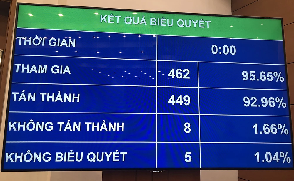 Kết quả biểu quyết của Quốc hội thông qua Luật sửa đổi, bổ sung một số điều của Luật Xây dựng vào chiều 17-6.