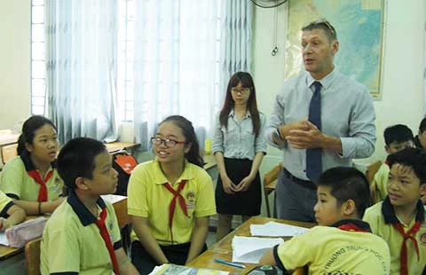 Học sinh một trường THCS tại TP.HCM đang học tiếng Anh với giáo viên bản ngữ. (Ảnh chỉ mang tính minh họa). ảnh: HÀ AN