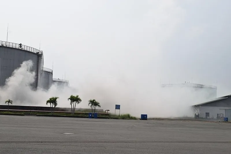 Tình huống giả định là sự cố bất ngờ xảy ra vào buổi sáng. Thời tiết mưa giông, tia sét đánh trúng bồn chứa dầu A11 gây nổ. Khói độc bay mù trời, che khuất tầm nhìn.