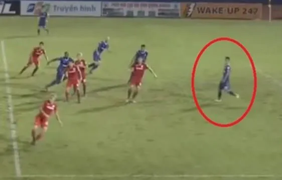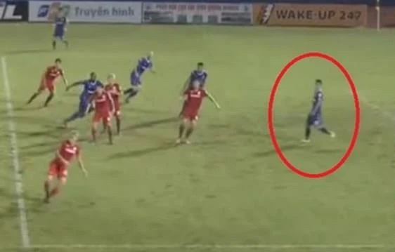 Tình huống Hồ Sỹ Giáp rơi vào thế việt vị nhưng không được trọng tài biên Nguyễn Nam Trung phát hiện.