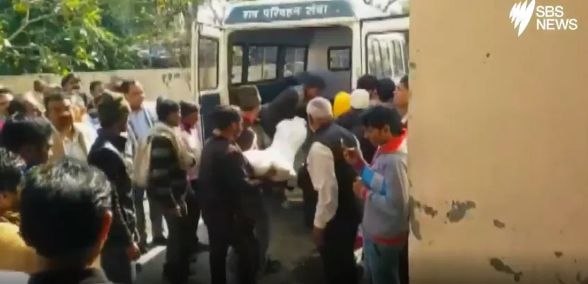 Thi thể một nạn nhân được đưa lên xe. Ảnh: SBS
