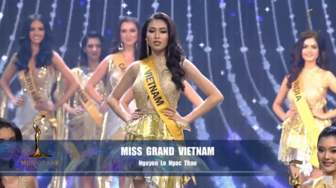 Sau khi dàn thí sinh xuất hiện lộng lẫy trong màn đồng diễn, từng thí sinh giới thiệu về bản thân. Ở phần giới thiệu về mình, Ngọc Thảo đã hô vang hai tiếng Việt Nam đầy tự hào.