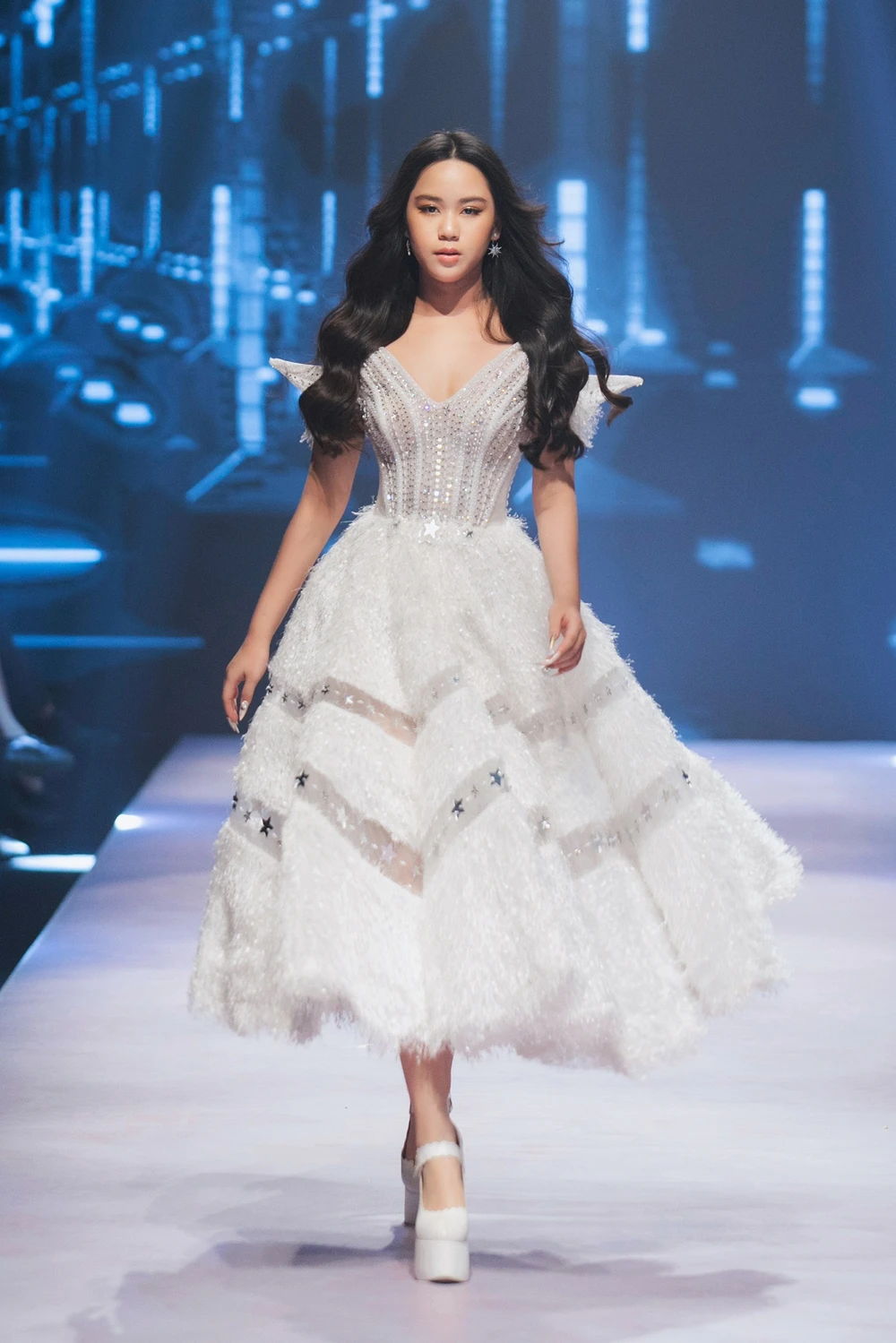 Theo đó, bộ sưu tập thứ 2 trên tổng ba bộ sưu tập lần này, nhà thiết kế Nguyễn Minh Tuấn đã dành đất diễn cho các model kid (Người mẫu nhí) với loạt váy áo lộng lẫy.