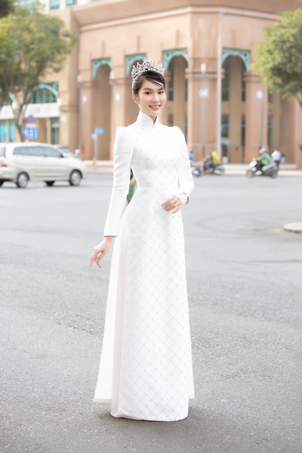 Với lợi thế chiều cao cùng thân hình đạt chuẩn, người đẹp đốn gục trái tim người hâm mộ trong trang phục áo dài trắng đơn giản nhưng vô cùng thanh lịch, trang nhã.