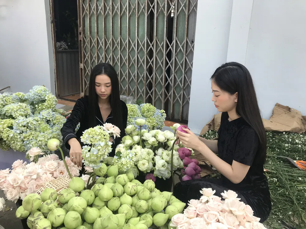 Thông qua những hình ảnh chuẩn bị, có thể thấy Thúy An đặt khá nhiều tấm tư cho khâu trang trí. Đặc biệt là cổng hoa được dựng lên từ nia tre và rất nhiều loài hoa quen thuộc như hoa sen, hoa thiên điểu, hoa cẩm tú cầu, hoa hồng,...