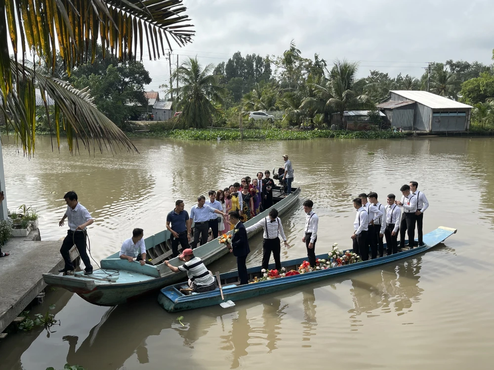 Đám cưới của nàng Á hậu vô cùng đặc biệt khi nhà trai phải đi rước dâu bằng xuồng để băng qua sông.