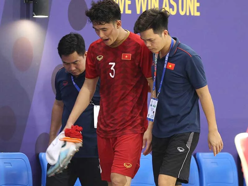 Chiều 25-11, Huỳnh Tấn Sinh khập khiễng rời sân. Ảnh: ANH PHƯƠNG