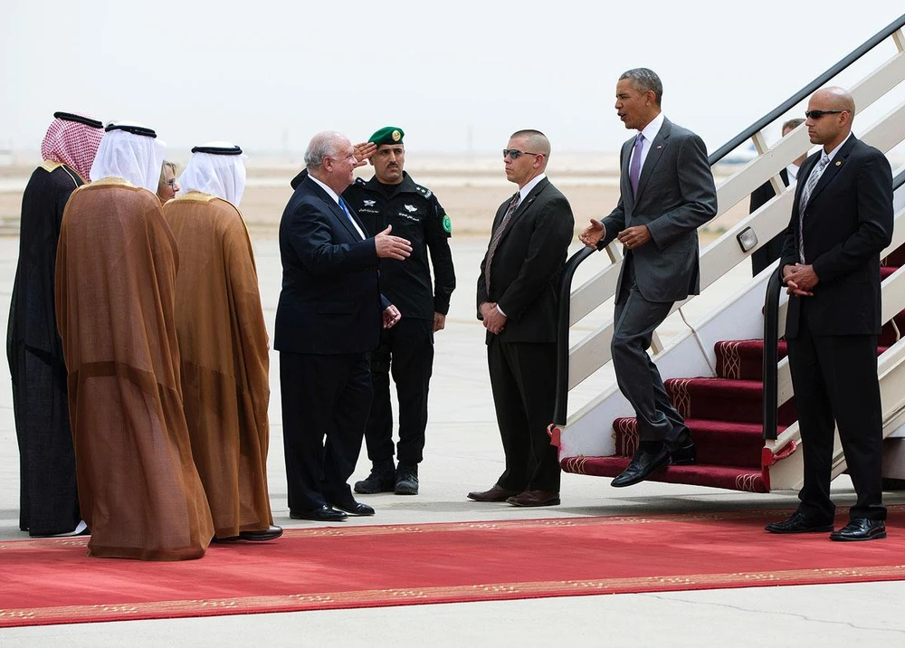 Cựu Tổng thống Obama khi công du Ả Rập Saudi vào tháng 4-2016, người ra tiếp đón ông là Hoàng tử Faisal bin Bandar Al Saud. Ảnh: Daily Mail