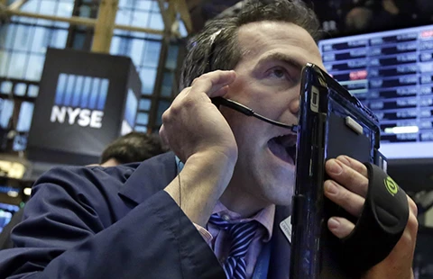 Chỉ số Dow trên sàn chứng khoán New York rơi gần 500 điểm vào ngày 20-1. Ảnh: AP