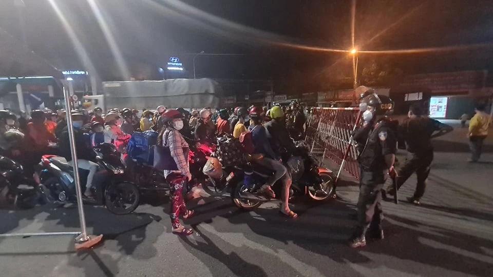 Đặc biệt trong đêm 1-10, hàng ngàn người dân ở Bình Dương về quê, họ đứng dưới trời mưa trước các chốt kiểm soát với hy vọng được về quê nhưng lực lượng kiểm soát đã thuyết phục họ ở lại.