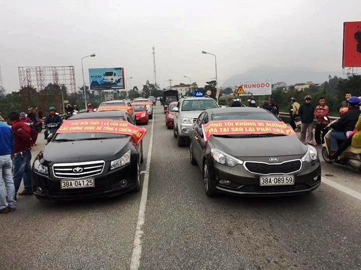Từ sáng sớm, nhiều ô tô con và cả ô tô tải mang hàng chữ dán trước xe như "Chúng tôi không đi đường mà tại sao phải trả phí?" ra dừng xe ngay đầu cầu Bến Thủy 1. Do quá nhiều người và quá nhiều xe dừng ngay trên quốc lộ 1A (phía huyện Nghi Xuân, Hà Tĩnh) và đầu cầu Bến Thủy 1 nên ách tắc giao thông qua cầu Bến Thủy 1.