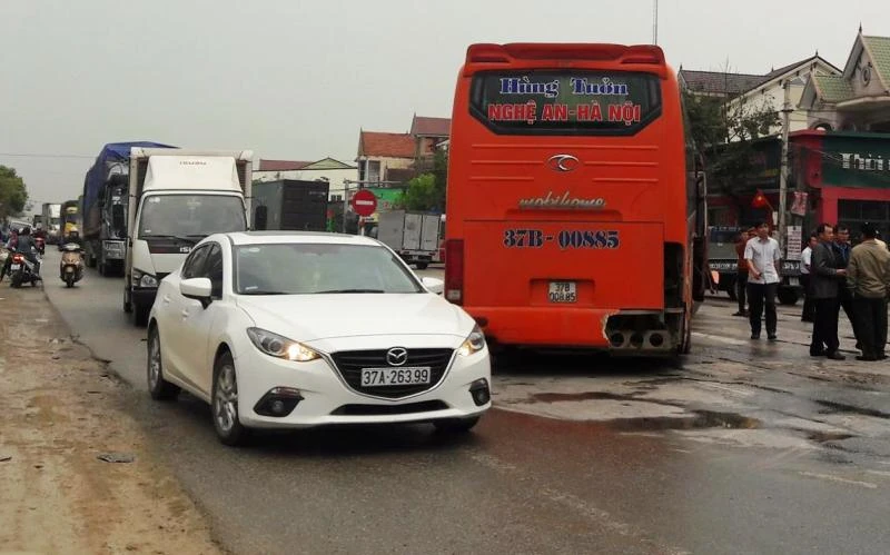 Vào thời điểm nêu trên, ô tô khách giường nằm biển số 37B-008.85 của nhà xe Hùng Tởn chạy tuyến Hà Nội-Nghệ An tông nhau với xe khách 12 chỗ chạy cùng chiều. Cú tông khiến xe khách giường nằm biển số 37B-008.85 mất lái, tông vào dải phân cách và quay giữa quốc lộ. Hành khách trên xe may mắn không bị thương nhưng hốt hoảng. Vụ tai nạn làm ách tắc quốc lộ 1A.