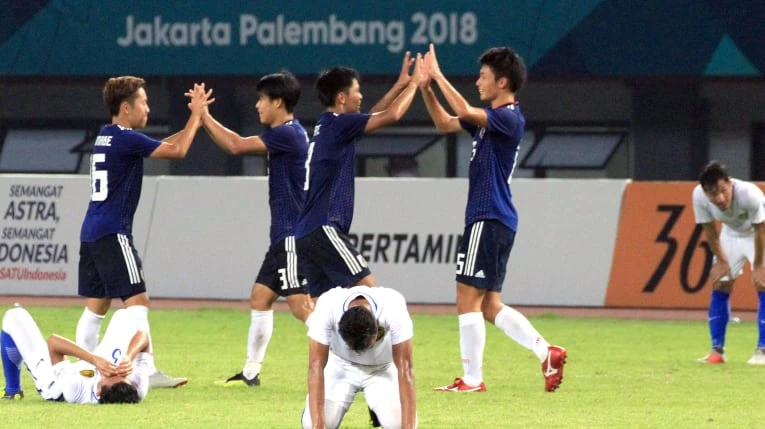 Nhật trong trận may mắn đánh bại Malaysia ở vòng 16 đội.