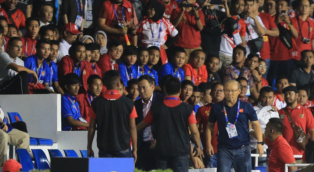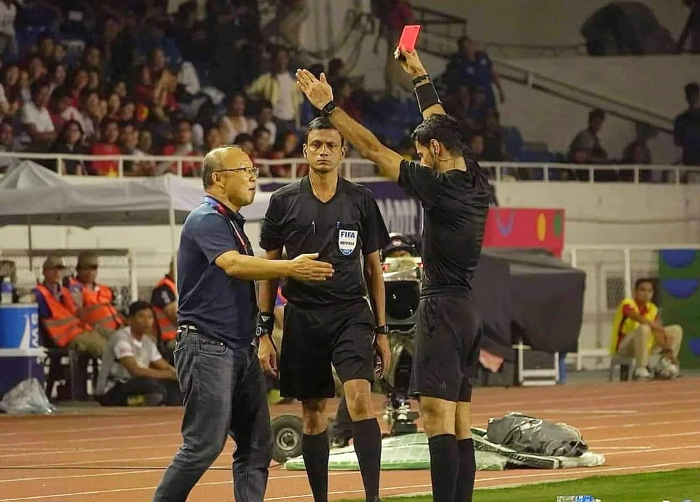 HLV Park nhận thẻ đỏ vì lỗi phản ứng tại SEA Games 30. ẢNH: ANH PHƯƠNG