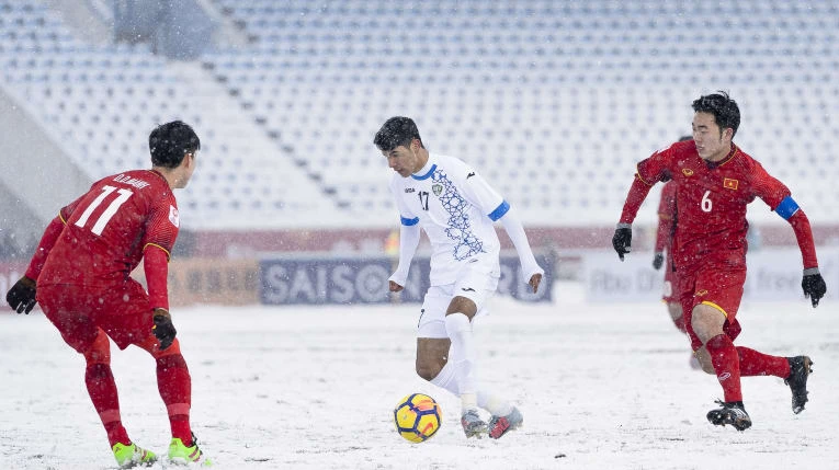 Trận chung kết trong tuyết giữa U-23 Việt Nam và U-23 Uzbekistan. Ảnh: AFC