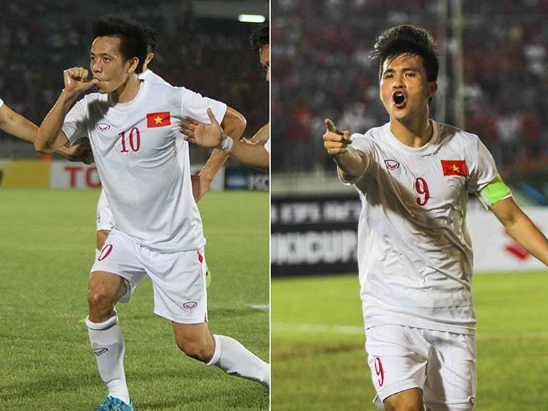 Văn Quyết (trái) mở tỉ số và Công Vinh “đóng đinh” trận đấu bằng bàn ấn định 2-1. Ảnh: HUY HÙNG