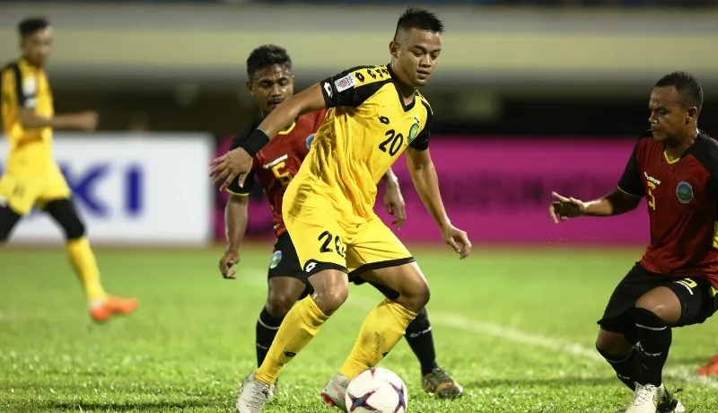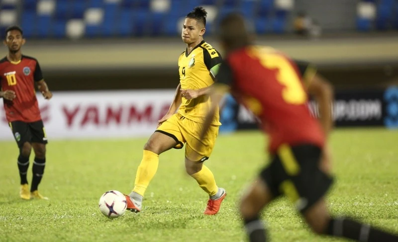 Cháu nội vua Brunei - tiền đạo Jefri (giữa) đang đá cho trẻ Leicester City cũng không giúp Brunei đánh bại được Đông Timor.